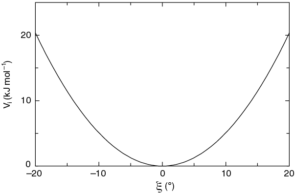 The simplest improper dihedral potential is a harmonic potential; it is plotted in Fig. 25.