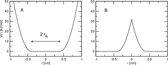 Fig. 30 Flat-bottomed position restraint potential. (A) Not inverted, (B) inverted.¶