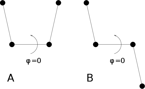 For the dihedral angles you can use either the “biochemical convention” (\(\phi = 0 \equiv cis\)) or “polymer convention” (\(\phi = 0 \equiv trans\)), see Fig. 55.