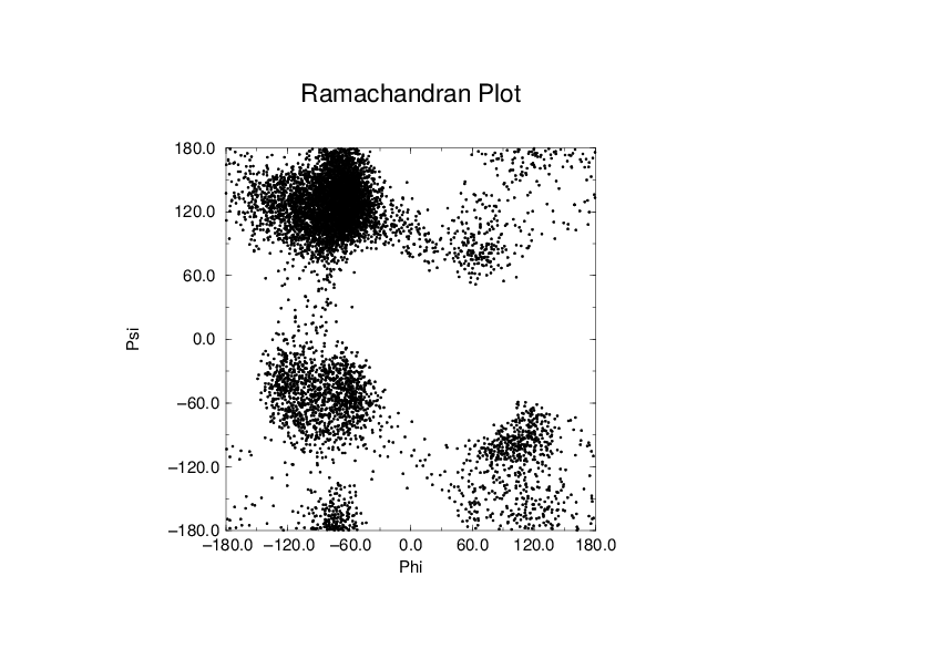 To evaluate this Ramachandran plot you can use the program gmx rama. A typical output is given in Fig. 61.