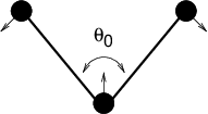 Due to its construction, the restricted bending potential cannot be used for equilibrium \(\theta_0\) values too close to \(0^{\circ}\) or \(180^{\circ}\) (from experience, at least \(10^{\circ}\) difference is recommended). It is very important that, in the starting configuration, all the bending angles are in the safe interval to avoid initial instabilities. This bending potential can be used in combination with any form of torsion potential. It will always prevent three consecutive particles from becoming collinear and, as a result, any torsion potential will remain free of singularities. It can be also added to a standard bending potential to affect the angle around \(180^{\circ}\), but to keep its original form around the minimum (see the orange curve in Fig. 22).