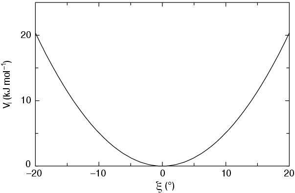 The simplest improper dihedral potential is a harmonic potential; it is plotted in Fig. 25.