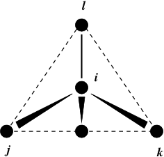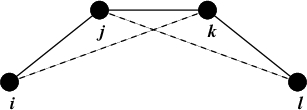 The bond-angle vibration between a triplet of atoms \(i\) - \(j\) - \(k\) (Fig. 19) is also represented by a harmonic potential on the angle \({\theta_{ijk}}\)