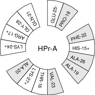 Fig. 62 Helical wheel projection of the N-terminal helix of HPr.¶